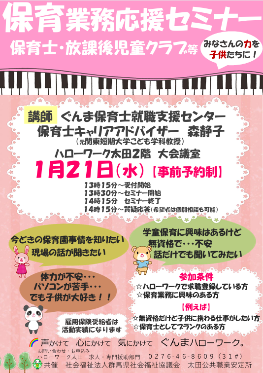 5/7 保育士応援セミナー開催(ハローワーク高崎)