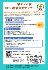 地域共生社会の実現に向けて、群馬県社会福祉協議会では、令和4年度に「企業等SDGs活動支援センター」を立ち上げ、SDGsにおける主に福祉分野の活動について、県内の企業等に対する支援活動を開始しました。