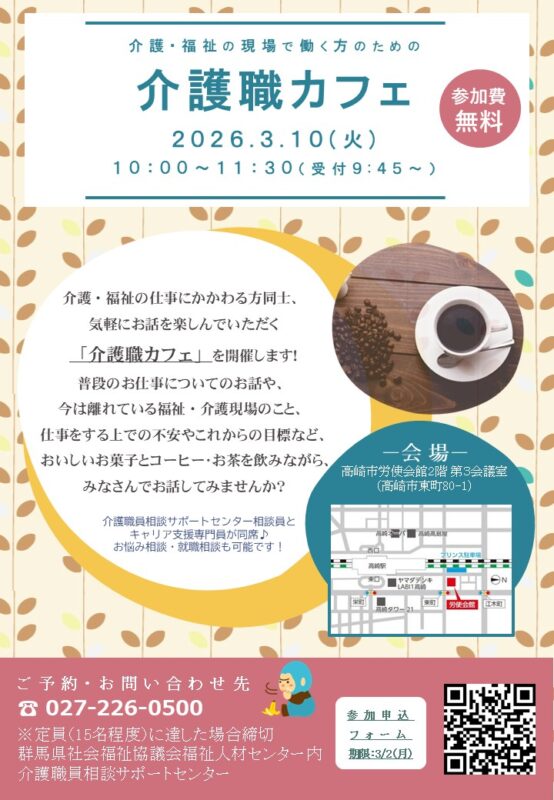 介護・福祉職員向け情報交換会「介護職カフェ」を開催します♪(高崎会場)