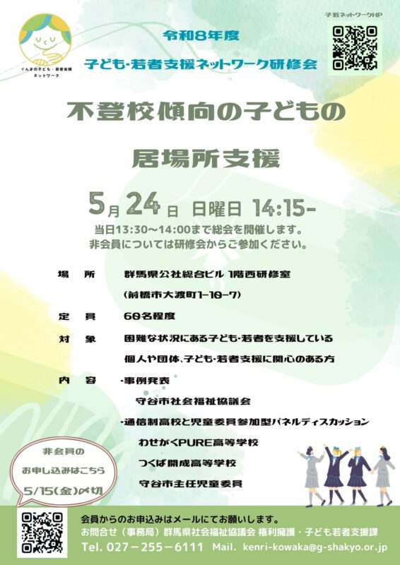 ぐんまの子ども・若者支援ネットワーク 令和8年度総会・研修会の開催について